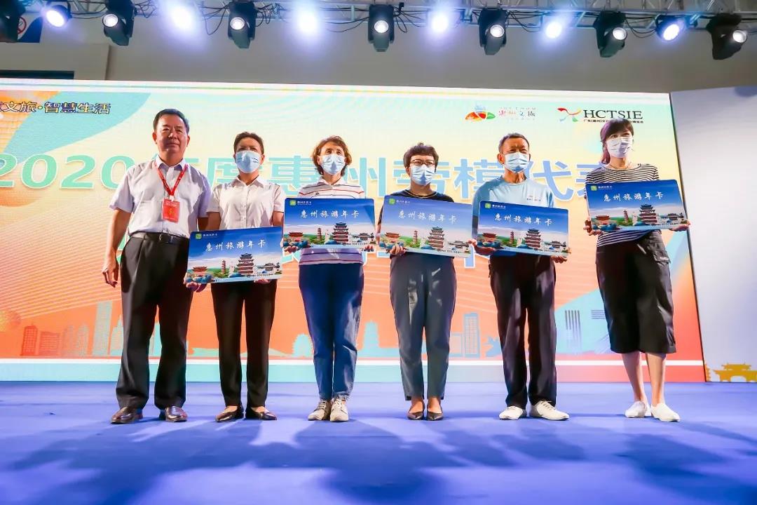 ▲惠州市文化廣電旅游體育局二級(jí)調(diào)研員田佑良為勞模代表頒發(fā)惠州旅游年卡